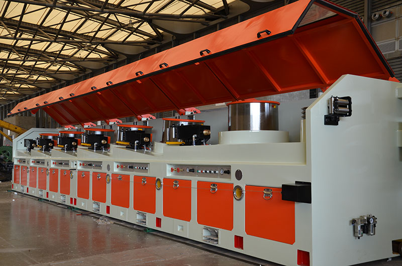 Straight line wire drawing machine designed and produced by Pingsheng has international advanced technical index and performance. Machines adopt many inventive patents and utility model patents in hardening and cooling technology for capstans. Machines are equipped with speed and stress sensors, which can achieve multi-item signal sampling to expand the function of intelligent detection of wire drawing machine. Straight line wire drawing can realize modern production line with the features of high total reduction rate, multi pass, low part reduction and high speed. The capstan diameter of this series of wire drawing machine is Φ350mm-Φ1200mm, the maximum inlet wire diameter is Φ16mm and the minimum wire diameter is Φ0.6mm.